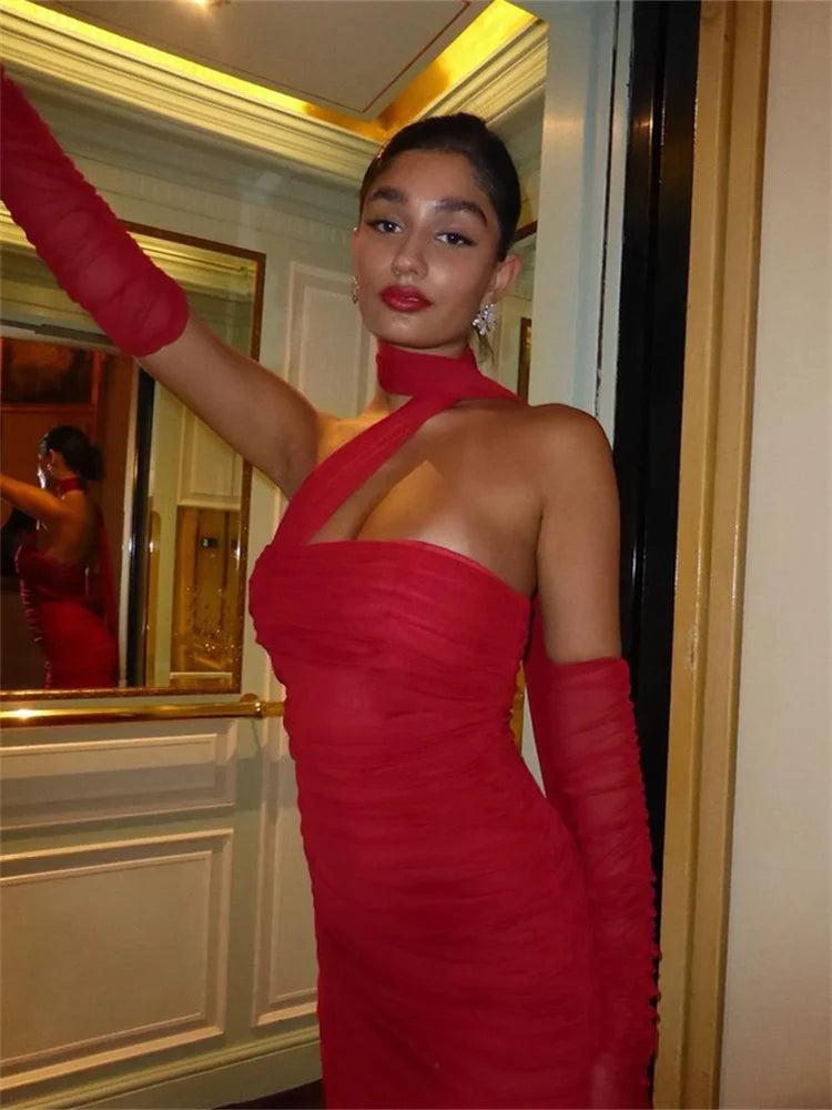 רוצה פריט שיגרום לכולם להסתכל עלייך פעמיים? שמלת המקסי הזו היא יותר מסתם בגד – היא חוויה. עיצוב הכתפיים החשופות יחד עם הטקסטורה הייחודית של הרשת יוצרים מראה נועז אך אלגנטי, שמתאים לאירועים שלא שוכחים.