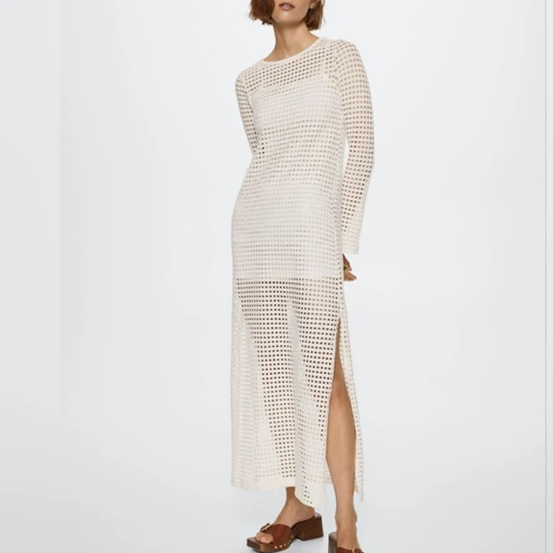 שמלת כיסוי קלה ונוחה עם שרוולים ארוכים ועיצוב שסע מודרני, מושלמת לחופשות, חוף וימי קיץ.