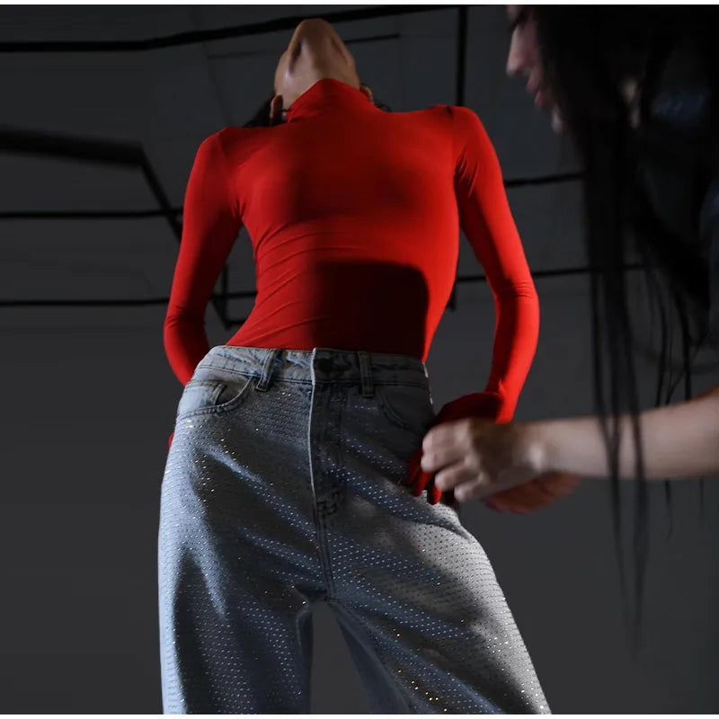 ג’ינס בגזרה רחבה עם פאייטים